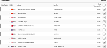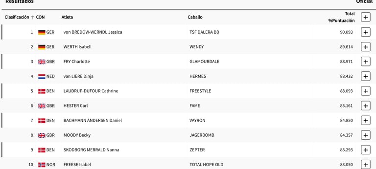 La prueba de doma individual fue un espectáculo de elegancia y precisión. Alemania se llevó las dos primeras medallas, con Jessica von Bredow-Werndl y su caballo TSF Dalera BB coronándose campeones olímpicos con una impresionante puntuación de 90.093, obteniendo la medalla de oro. La plata fue para su compatriota Isabell Werth, quien montó a Wendy y alcanzó una puntuación de 89.614. El bronce fue para la británica Charlotte Fry, que con su caballo Glamourdale obtuvo una puntuación de 88.971.